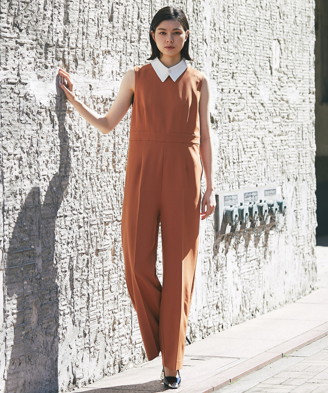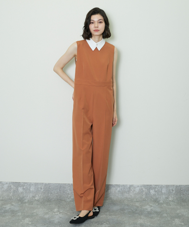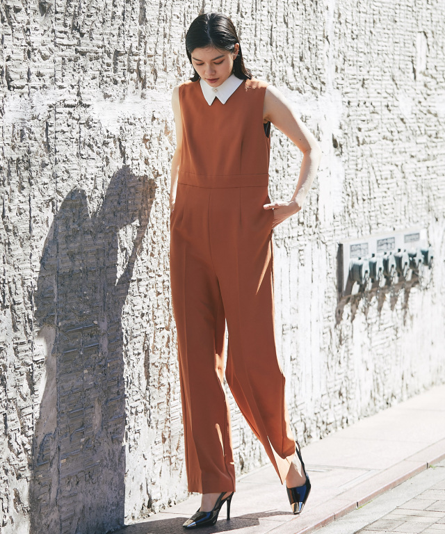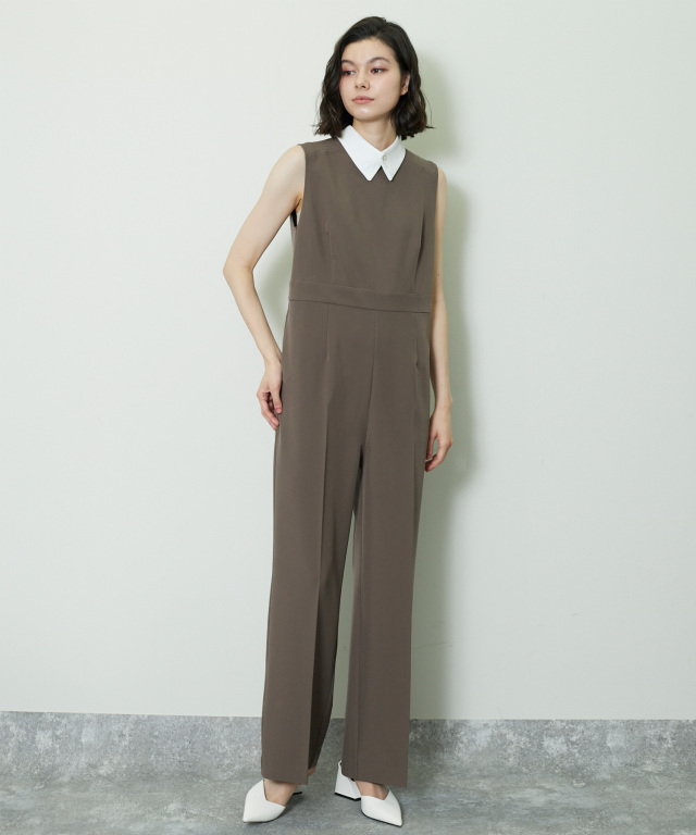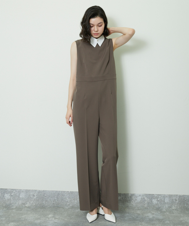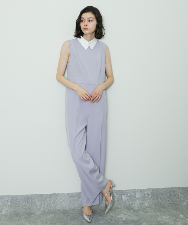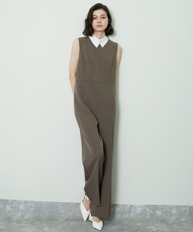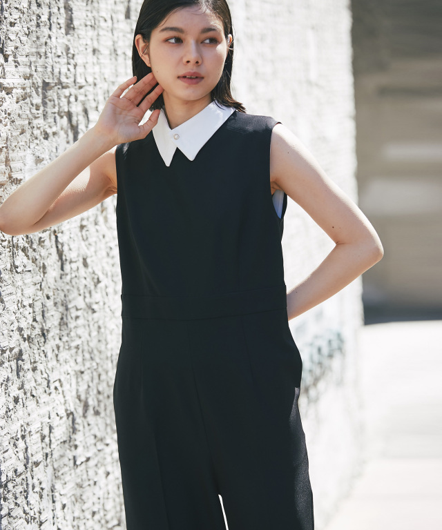 付け襟×大人の上品なパンツドレス