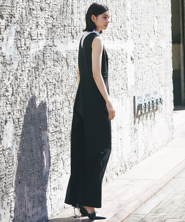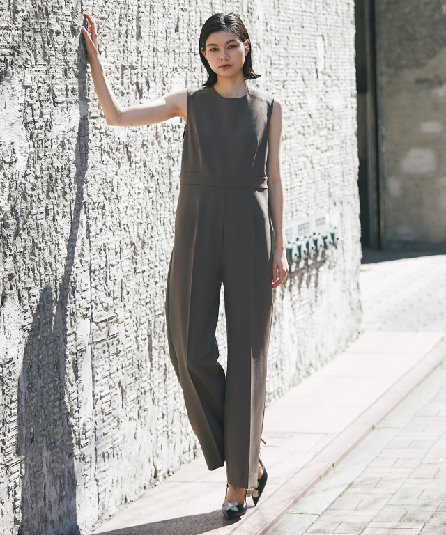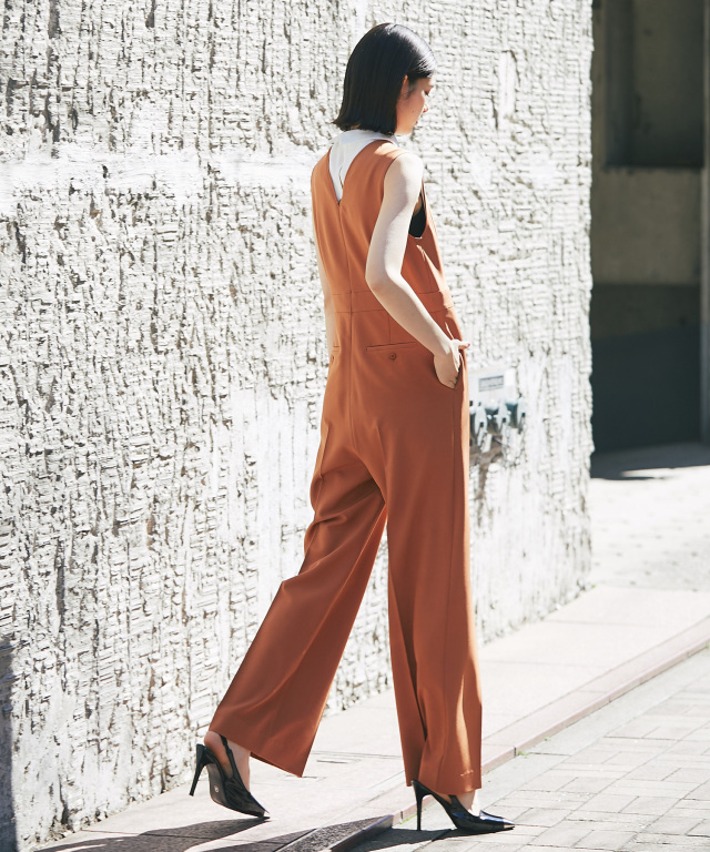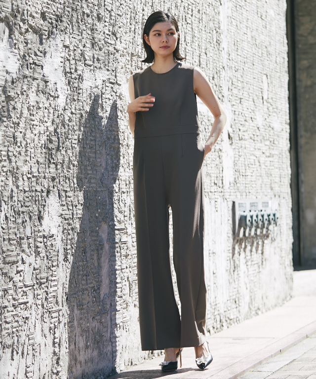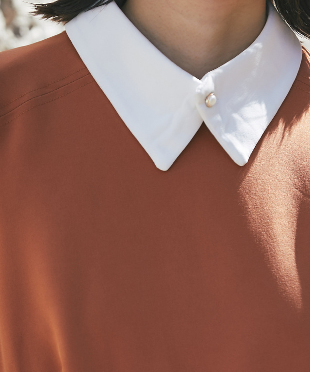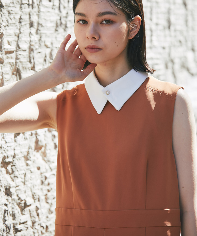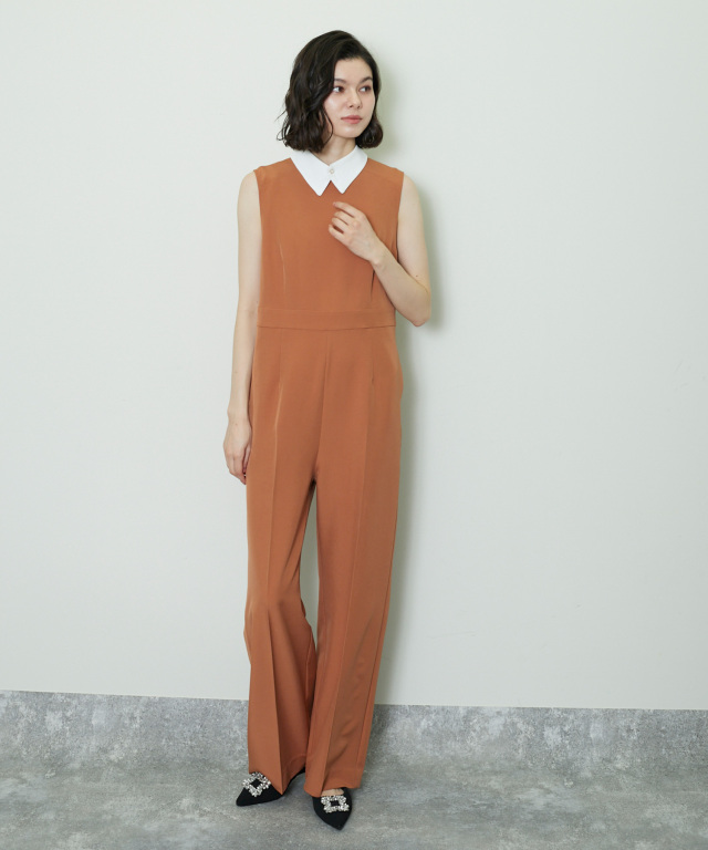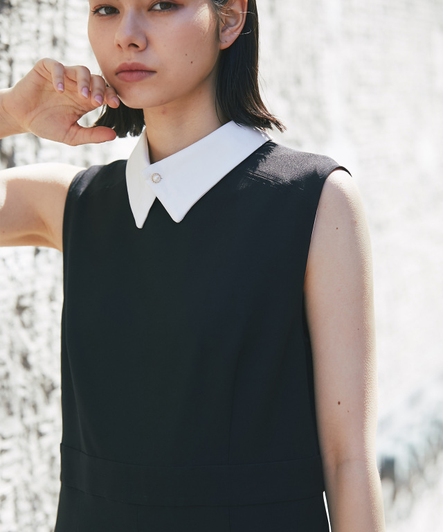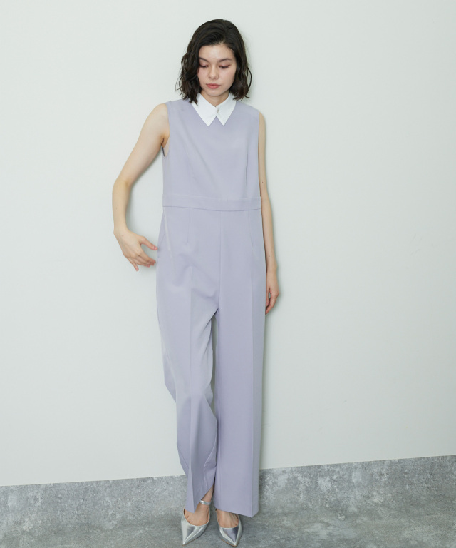 付け襟×大人の上品なパンツドレス