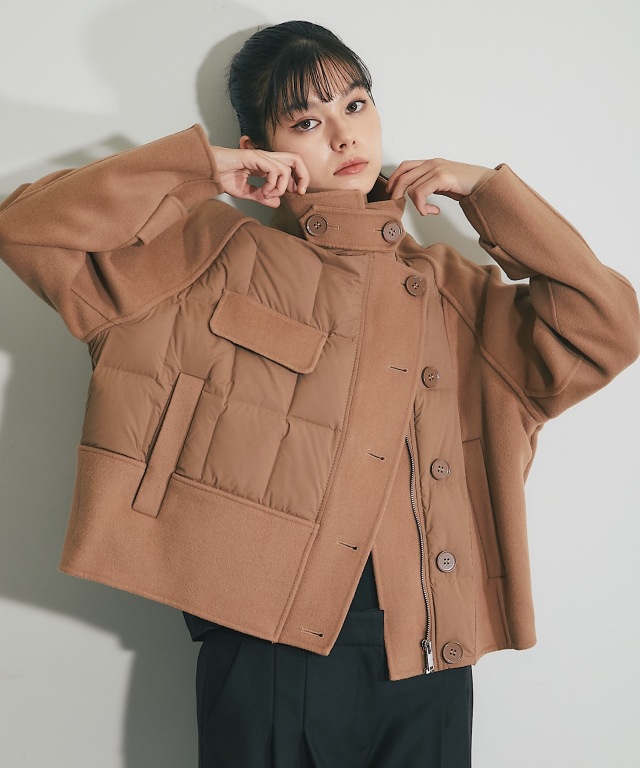 ダウンとウールの異なる素材感がアクセントになったキャッチーなデザイン
