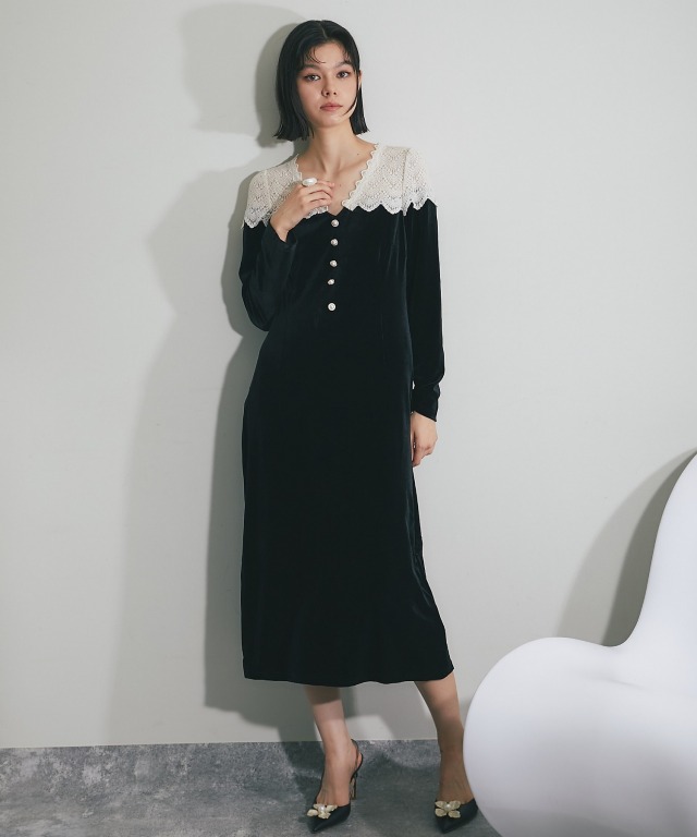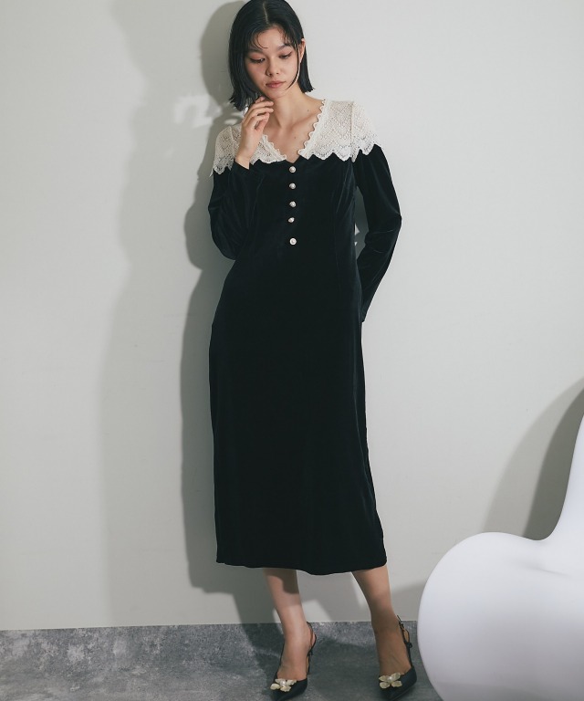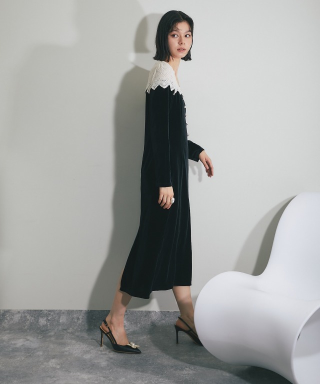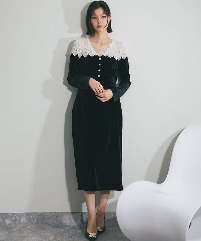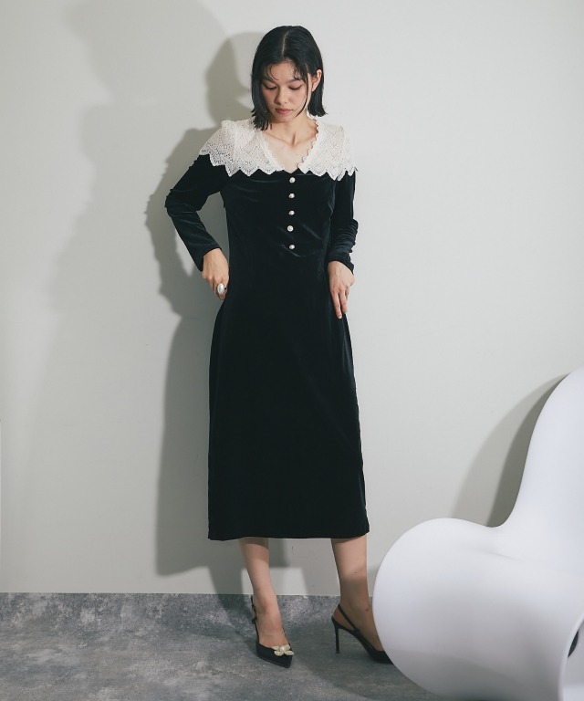 ベルベットワンピース 身体に沿いすぎないほど良いフィット感のすっきりとしたボディに。 シンプルなスタイリングにも女性らしい華やかさを演出してくれます。 これからのパーティシーズンにぴったりのアイテムです。 ■カラー ブラック ■商品のディテール ※透け感:肩/あり ※光沢感:やや ※伸縮性:あり ※裏地:あり ※ポケット:なし ※ファスナー:あり/サイド ※付属品:なし |