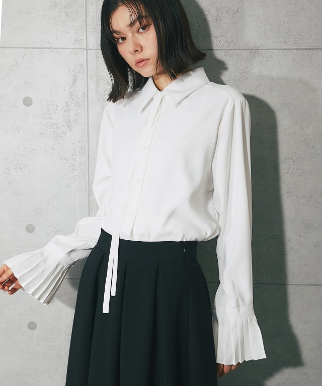 袖のプリーツと取り外しの出来るタイがポイントのブラウス